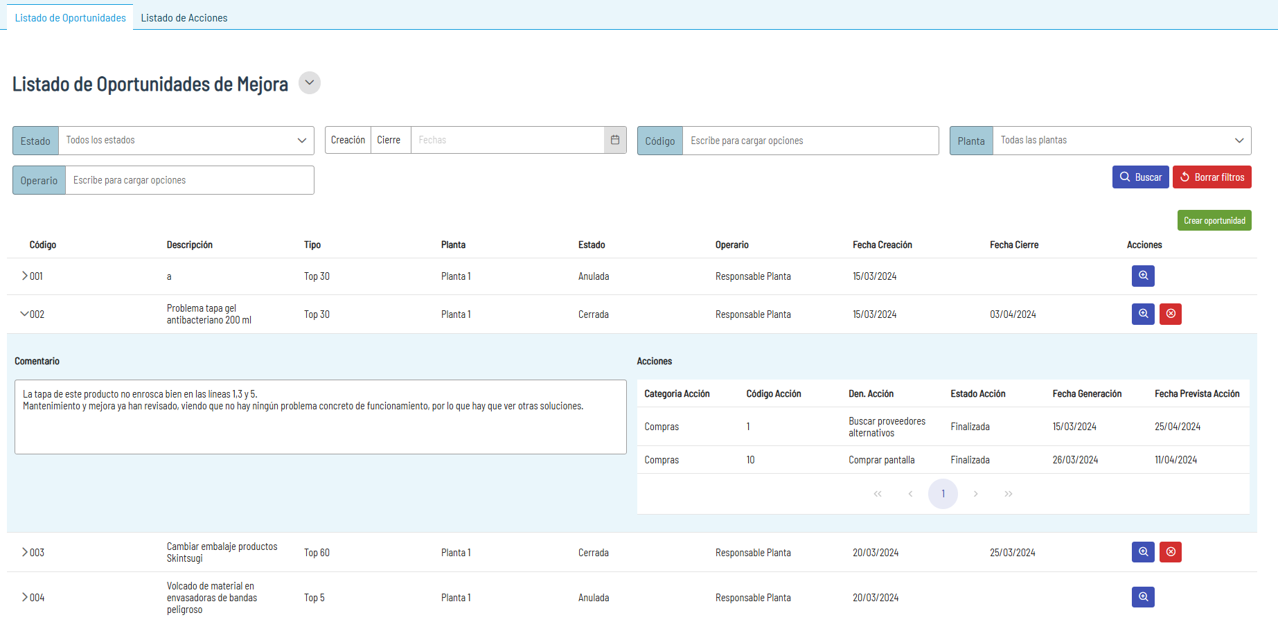 Está diseñado para gestionar y optimizar las oportunidades de mejora dentro de la fábrica, asegurando un seguimiento estructurado de cada iniciativa. Su objetivo es convertir cada idea de mejora en un resultado tangible y medible, facilitando su implementación a través de herramientas digitales avanzadas.