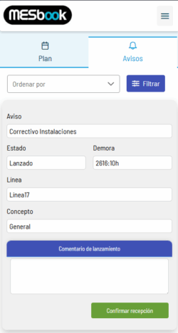 Permite lanzar y gestionar avisos individuales o masivos para notificar problemas o requerimientos, facilitando la gestión de mantenimiento y calidad.