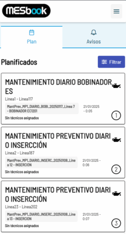 La eficiencia en plantas de producción se consigue al centralizar la gestión de máquinas y facilitar la planificación de mantenimientos correctivos y preventivos.